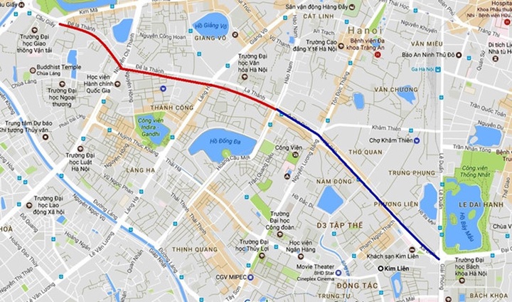 | Đường vành đai 1 (đoạn Hoàng Cầu - Voi Phục), có chiều dài khoảng 2,27 km với tổng mức vốn dự án lên tới 7.779 tỷ đồng. |