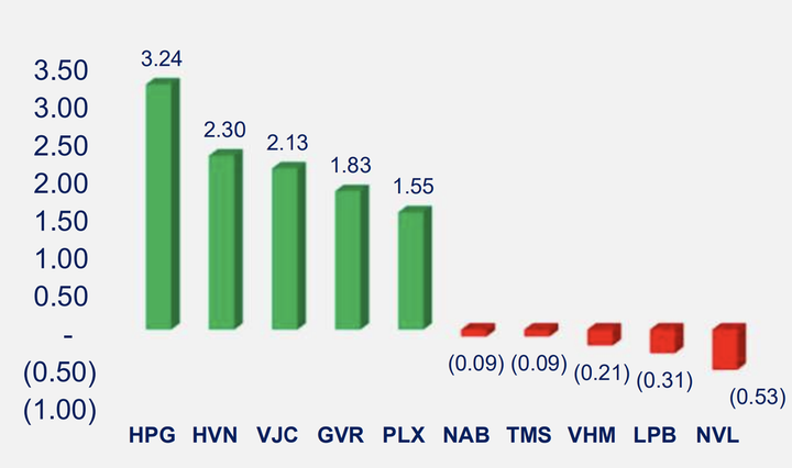 | Những cổ phiếu tác động tích cực nhất đến VN-Index tuần qua |