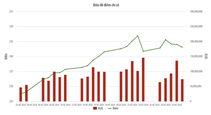 Trong tháng 5, thị trường cổ phiếu niêm yết tại HNX tăng về giá cổ phiếu nhưng giảm nhẹ về thanh khoản so với tháng trước.