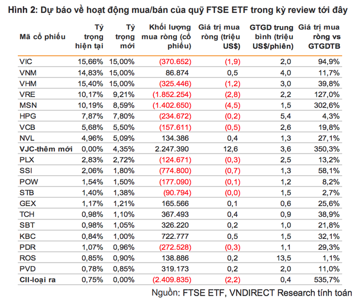 VNDirect ước tính tỷ trọng của VJC trong FTSE Vietnam Index là khoảng 4,4%, tương ứng FTSE Vietnam Index có thể mua ròng 12,6 triệu US$ cổ phiếu VJC.