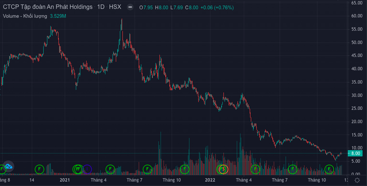 Trên thị trường chứng khoán, mã APH đã giảm sâu về giao dịch tại vùng giá 7.940 đồng/cổ phiếu (chốt phiên ngày 29/11). So với mức đỉnh lập hồi tháng 11/2021 lên đến trên 40.000 đồng/cổ phiếu thì APH đã mất hơn 3/4 thị giá.