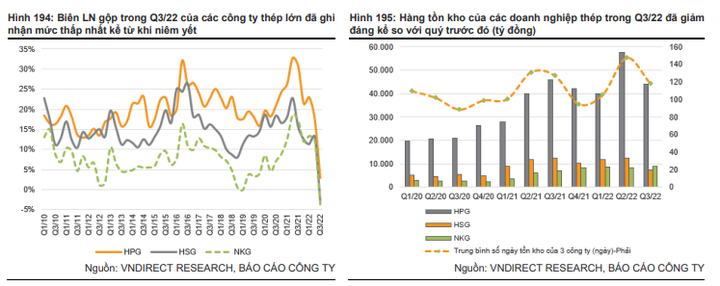 Bất chấp việc giá bán thép vẫn tiếp tục giảm trong tháng 10- tháng 11, trong báo cáo chiến lược đầu tư năm 2023, công ty chứng khoán VNDirect vẫn kỳ vọng biên lợi nhuận gộp của các công ty thép sẽ phục hồi từ quý IV khi hầu hết hàng tồn kho giá cao đã được ghi nhận vào giá vốn hàng bán của quý trước đó.