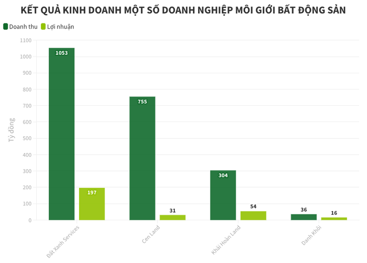 Công ty cổ phần Bất động sản Khải Hoàn Land (mã chứng khoán: KHG) là doanh nghiệp môi giới niêm yết duy nhất ghi nhận lợi nhuận quý này tăng 20%, đạt 54 tỷ đồng. Tuy nhiên, kết quả có được là nhờ khoản thu 100 tỷ đồng phát sinh từ việc chuyển nhượng hợp đồng mua bán bất động sản. Trong khi đó, doanh thu dịch vụ môi giới đạt 206 tỷ đồng, đi ngang so với cùng kỳ.