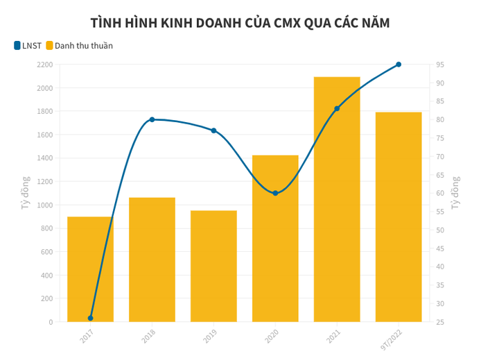 Lũy kế 9 tháng, CMX ghi nhận doanh thu thuần đạt 1.792 tỷ đồng, tăng 36,8%. Sau thuế doanh nghiệp này báo lãi tăng 85% so với cùng kỳ năm ngoái, đạt 95,2 tỷ đồng.
