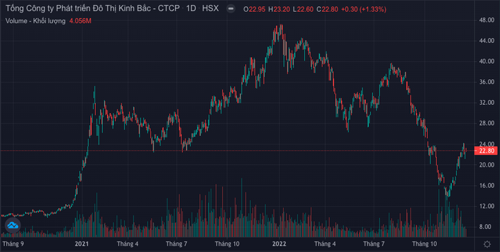Động thái đỡ giá của Chủ tịch Kinh Bắc diễn ra trong bối cảnh cổ phiếu KBC đang có nhịp hồi phục khá mạnh sau khi giảm mạnh về vùng đáy 2 năm vào ngày 10/11. Chốt phiên ngày 14/12, KBC dừng ở mức giá 22.800 đồng/cổ phiếu, tương ứng phục hồi 63% chỉ sau hơn một tháng. Tuy nhiên, so với đỉnh đầu năm nay, thị giá KBC vẫn thấp hơn 51%.