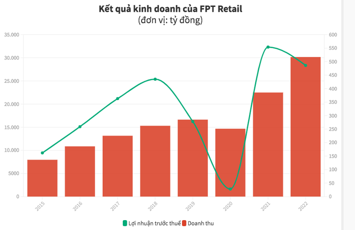 Diễn biến đó khiến kết quả kinh doanh của FPT Shop không đạt kế hoạch. Tuy nhiên, nhu cầu tiêu dùng các mặt hàng dược phẩm của Long Châu ít bị ảnh hưởng hơn nên vẫn có kết quả tốt. Tính chung, FPT Retail đạt lợi nhuận trước thuế 486 tỷ đồng, lợi nhuận sau thuế gần 400 tỷ đồng. So với kế hoạch 27.000 tỷ đồng doanh thu và 720 tỷ đồng sau thuế đặt ra, công ty vượt chỉ tiêu doanh thu song chỉ thực hiện 67,5% chỉ tiêu lợi nhuận.