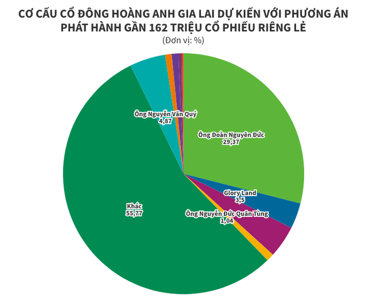 Ngay khi hoàn thành đợt chào bán, vốn điều lệ của HAGL sẽ tăng từ 9.275 tỷ đồng lên 10.893 tỷ đồng. Tỷ lệ sở hữu của ông Đoàn Nguyên Đức sau đó sẽ giảm từ 34,5% xuống 29,37%.