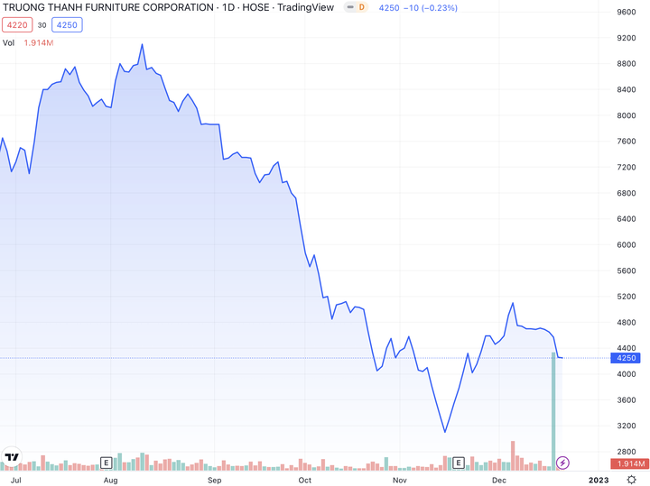 Sau 9 tháng, Gỗ Trường Thành đạt doanh thu hơn 1.500 tỷ đồng, tăng gần 40% so với cùng kỳ 2021. Tuy nhiên, lợi nhuận ròng của doanh nghiệp này chỉ đạt 7 tỷ đồng, giảm 35% so với cùng kỳ năm trước.