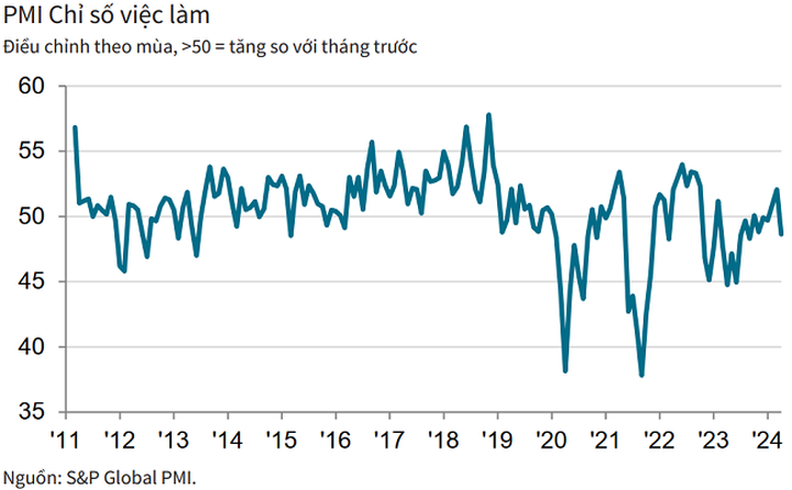 Tuy nhiên, trong thời điểm số lượng đơn đặt hàng mới tăng trở lại, việc giảm số lượng nhân viên khiến các công ty khó hoàn thành kịp thời các đơn hàng. Kết quả là, lượng công việc tồn đọng đã tăng lần đầu tiên trong ba tháng, mặc dù mức tăng chỉ là nhẹ.