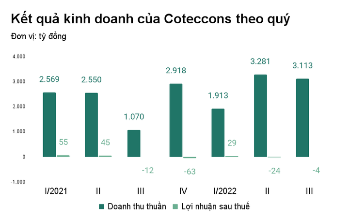 Sau cùng, nhà thầu này lỗ ròng 4 tỷ đồng trong quý III. Nếu không phát sinh chi phí liên quan đến hoạt động đầu tư chứng khoán, Coteccons đáng ra đã có lãi.