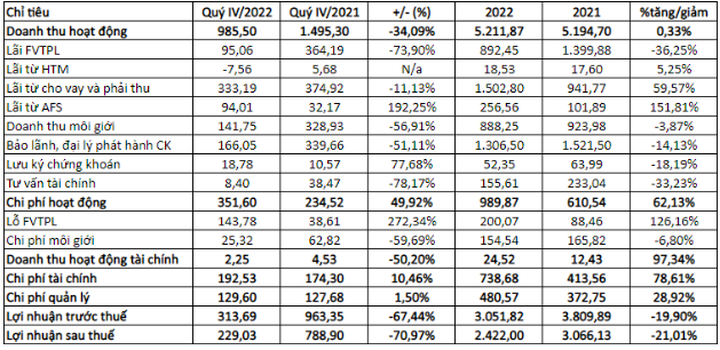 Kết quả, TCBS báo lãi sau thuế 229 tỷ đồng trong quý IV/2022, giảm 71% so với cùng kỳ năm trước.