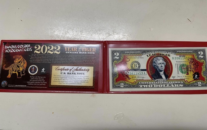 “Dù không có giá trị lưu thông nhưng đồng 2 USD in hình hổ. Theo quan niệm của người Á Đông, con hổ là biểu tượng cho sức mạnh, quyền quý . Thế nên, những chú hổ trên tờ tiền mang ý nghĩa tài lộc cho gia chủ”, một người bán trên sàn thương mại quảng cáo.