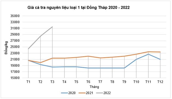 Dự báo, tình trạng khan hiếm nguyên liệu sẽ còn tiếp tục kéo dài cho tới ít nhất là hết quý 2/2022. Hiện nay, giá cá tra cỡ 0,7 - 0,8 kg/con dao động ở mức 31.000 - 32.500 đồng/kg; cỡ 1 - 1,2 kg/con dao động mức 32.000 - 34.500 đồng/kg. Như vậy, so với cùng kỳ, giá cá tra nguyên liệu đã tăng từ 8.000 - 10.000 đồng/kg so với cùng kỳ năm ngoái và tăng khoảng 20% so với cuối năm 2021.