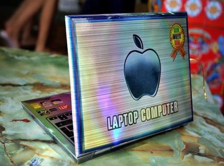 Quả táo "không cắn dở" cũng được in một cách cẩn thận trên chiếc laptop cho người âm.