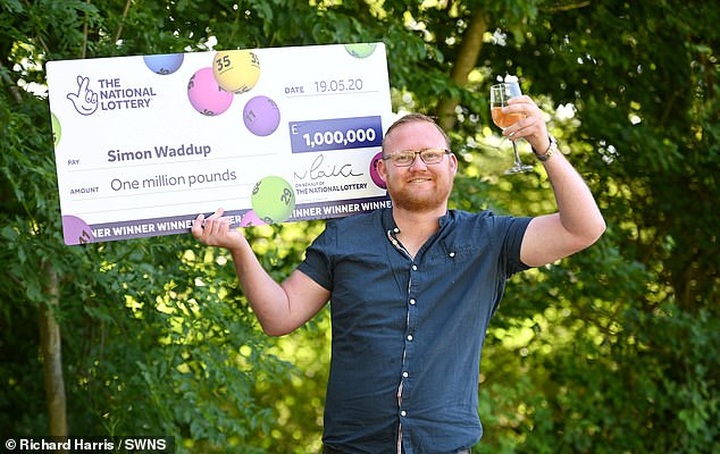 Simon Waddup, 31 tuổi, đến từ Coventry, đã mua một vé số trong siêu thị Aldi ở địa phương của mình khi anh “nghe thấy một giọng nói trong đầu” bảo anh hãy tham gia trò chơi xổ số quốc gia Anh vào ngày 19 tháng 5.