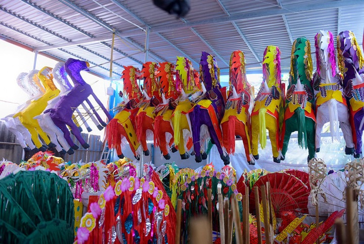 | Cũng giống với nhiều làng nghề làm hàng mã khác, gần đến dịp rằm tháng 7 Âm lịch không khí mua bán hàng mã luôn nhộn nhịp. |