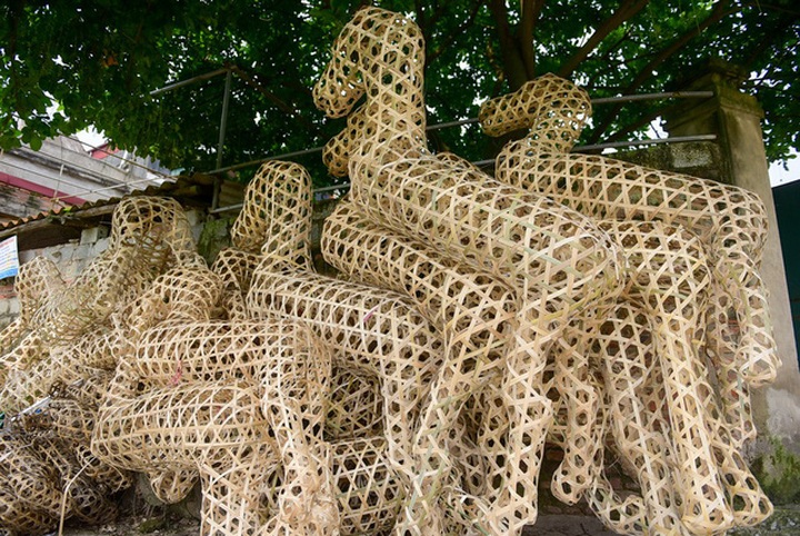| Mô hình ngựa cao trên 2m đã được làm khung chờ hoàn thiện dán giấy. |