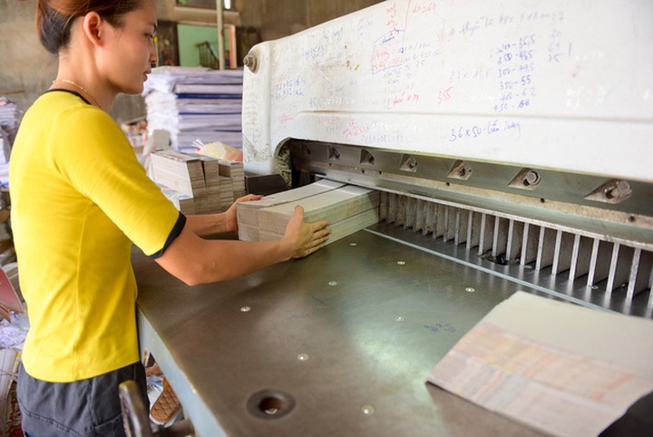 | "Các sản phẩm vàng mã giờ có máy cắt công nghiệp, không còn cắt bằng tay như trước, hàng cũng đẹp và năng suất hơn nhiều", chị Trần thanh Huyền (xã Song Hồ) chia sẻ. |