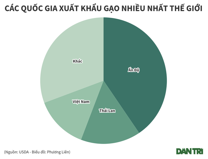 | Các quốc gia xuất khẩu gạo nhiều nhất thế giới (Biểu đồ: Phương Liên) |