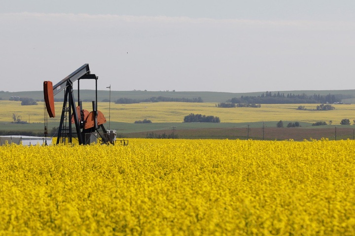 Các cánh đồng cải dầu nở rộ ở vùng nông thôn Alberta, Canada, vào tháng Bảy.