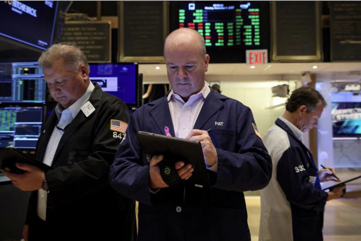 | Sắc xanh phủ khắp các bảng điện tử chứng khoán Mỹ sau khi Bộ Lao động Mỹ công bố báo cáo chỉ số giá tiêu dùng (Ảnh: Reuters). |