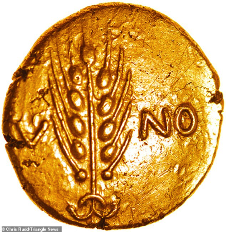 Đồng xu mô tả nhà lãnh đạo Caratacus, người đã chống lại cuộc xâm lược của người La Mã vào năm 43 sau Công nguyên, được đúc ở Hampshire ngay trước khi Hoàng đế Claudius cử bốn quân đoàn đến đột kích Britannia.
