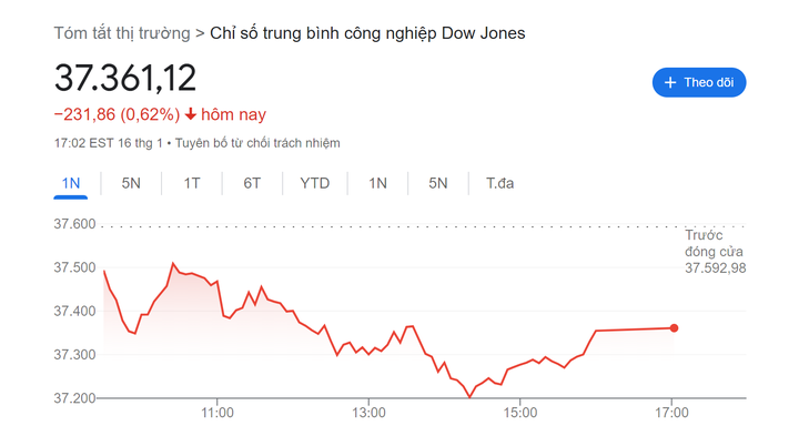 | Dow Jones giảm hơn 200 điểm trong phiên 16/1 |