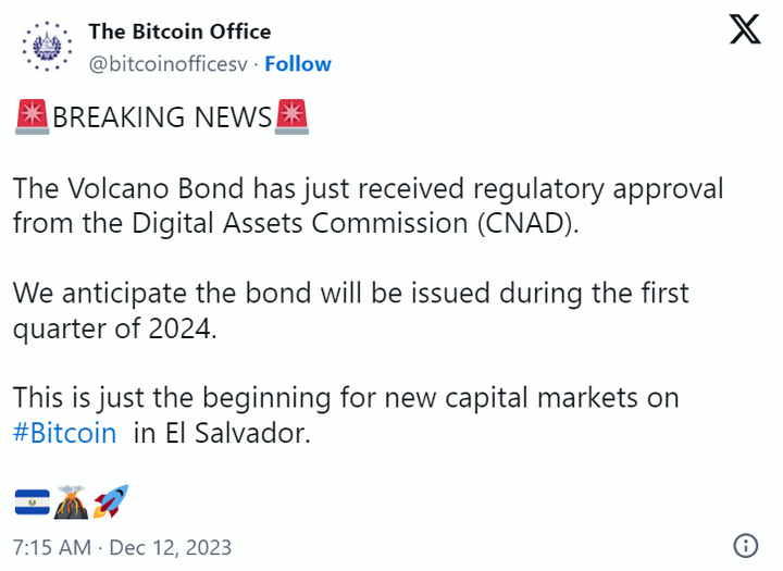 Trái phiếu Bitcoin của El Salvador, hay còn gọi là “Trái phiếu núi lửa” (Volcano Bond) đã được chấp thuận phát hành vào đầu năm 2024.