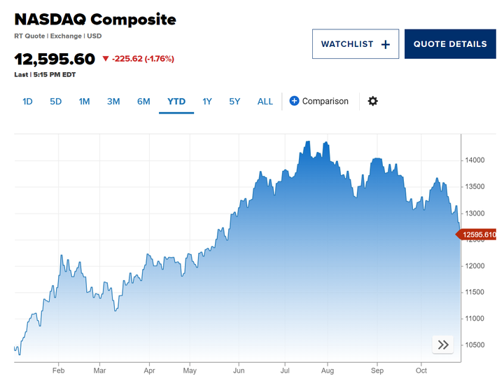 Theo đó, chỉ số Dow Jones Industrial Average giảm 251,63 điểm, tương đương 0,76%, xuống 32.784,3 điểm. Chỉ số S&P 500 giảm 1,18% xuống 4.137,23 điểm. Chỉ số Nasdaq Composite giảm 1,76% xuống 12.595,6 điểm, nằm dưới đường MA200 đồng thời rơi vào vùng điều chỉnh khi thấp hơn so với đỉnh gần nhất ghi nhận vào tháng 7 hơn 10%.
