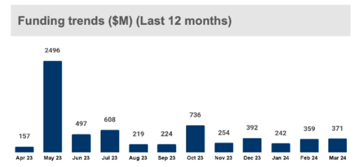 Tuy nhiên, điểm tích cực là dòng vốn đang tăng trưởng qua từng tháng. Cụ thể, trong tháng 3/2024, các công ty khởi nghiệp công nghệ ở Đông Nam Á đã huy động được 371 triệu USD qua 42 vòng gọi vốn.