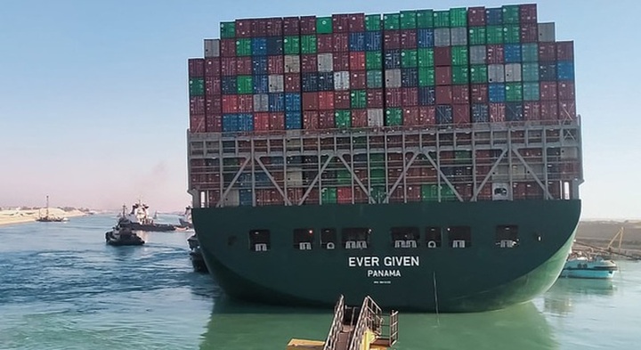 Còn tàu dài 400 mét, chở khoảng 18.300 container đã bị mắc kẹt vào mạn phía nam của kênh đào Suez ngày 23/3 do gió lớn, gây tắc nghẽn trầm trọng tại tuyến đường thuỷ nhộn nhịp nhất thế giới này.