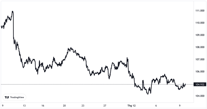 Diễn biến chỉ số Dollar Index trong vòng 1 tháng qua. |