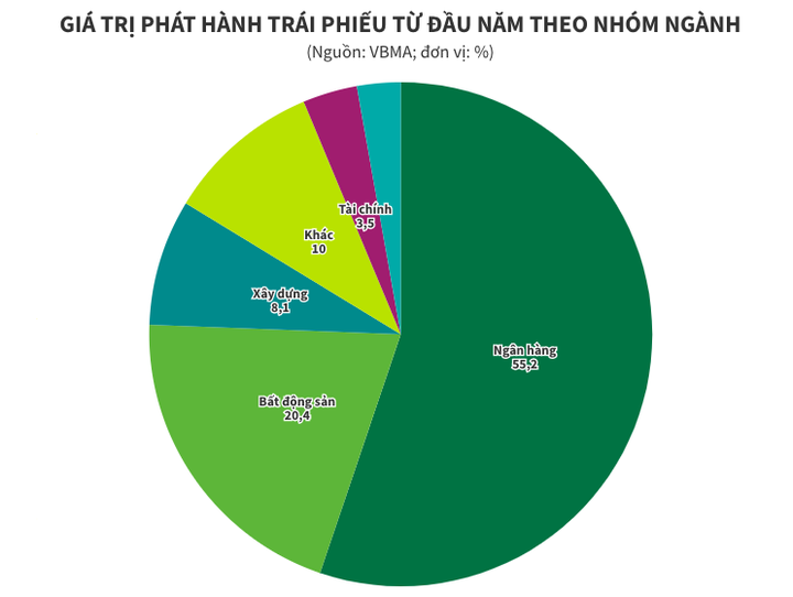 Ngân hàng vẫn là nhóm dẫn đầu với tổng giá trị phát hành 9.623 tỷ đồng. Trong đó, VietinBank phát hành nhiều nhất với 3.090 tỷ đồng, theo sau là VPBank 2.000 tỷ đồng, OCB 1.800 tỷ đồng và SeABank 750 tỷ đồng.