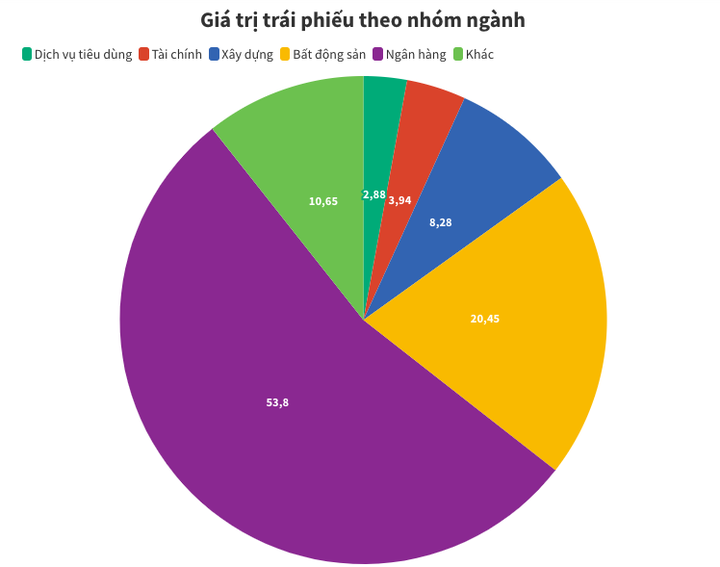Nhóm ngân hàng vẫn dẫn đầu về giá trị phát hành với tổng giá trị đạt 136.371 tỷ đồng, tương đương 53,8% tổng giá trị phát hành. Nhóm bất động sản đứng ở vị trí thứ 2, với 51.829 tỷ đồng, chiếm khoảng 20,4%.