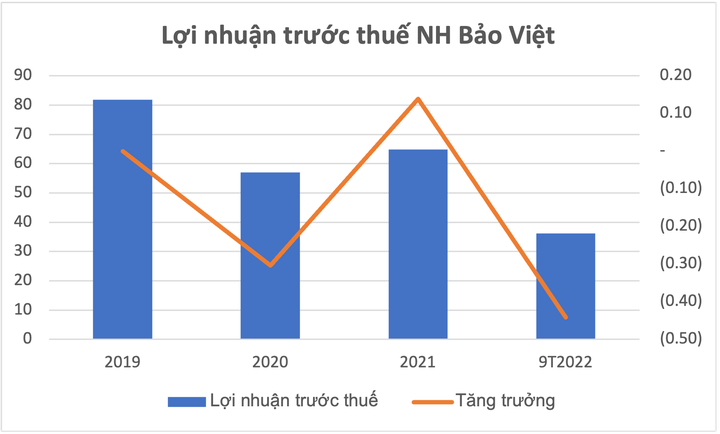 Quý III, BaoVietBank có lợi nhuận trước thuế đạt 9,6 tỷ đồng, giảm 198% so với cùng kỳ quý III/2021. Lũy kế 9 tháng đầu năm, BaoVietBank ghi nhận lợi nhuận trước thuế đạt 36,2 tỷ đồng, giảm gần 21% so với cùng kỳ. Nguyên nhân được cho là các nguồn thu ngoài lãi của BaoViet Bank sụt giảm nghiêm trọng. Sau thuế, quý III ngân hàng này lãi hơn 7,7 tỷ đồng, sau 9 tháng là gần 29 tỷ đồng dù đã cắt giảm đến 74% chi phí dự phòng rủi ro tín dụng.