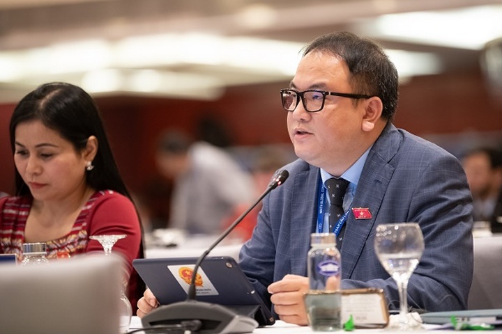 Đại biểu Quốc hội Việt Nam Phạm Trọng Nghĩa chia sẻ trong phiên thảo luận chuyên đề 2 “Đổi mới sáng tạo và khởi nghiệp” tại Hội nghị Nghị sĩ trẻ toàn cầu lần thứ 9 đang diễn ra tại Hà Nội.