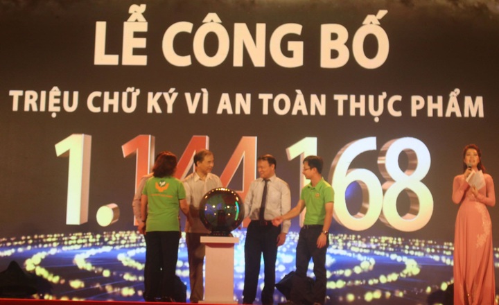 Tại buổi lễ, Lãnh đạo Bộ Công Thương và lãnh đạo các bộ ngành Trung ương và địa phương, đại diện các doanh nghiệp đã cùng bấm nút công bố con số 1.144.168 lượt người đã ký tên hưởng ứng Chương trình Hành động vì an toàn thực phẩm trong suốt 8 tháng qua.