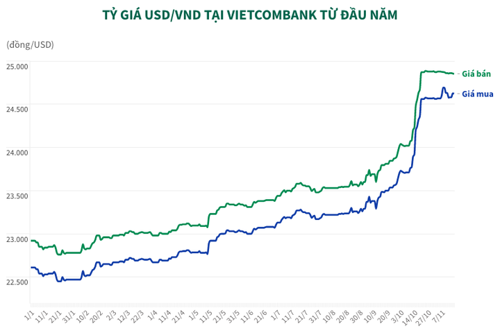 | Diễn biến giá USD từ đầu năm (Biểu đồ: Thảo Thu). |