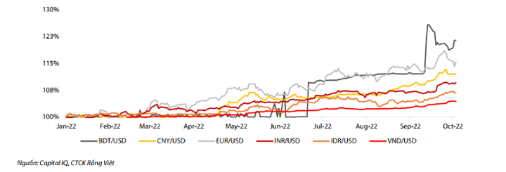 Bên cạnh đó, tỷ giá USD/VND leo thang cũng tác động lên một số doanh nghiệp dệt may trong nước. Mặc dù các công ty dệt may Việt có doanh thu được ghi nhận bằng USD, tuy nhiên họ còn phải nhập khẩu phần lớn nguyên vật liệu đầu vào và chịu chi phí xuất khẩu, nợ vay bằng USD.